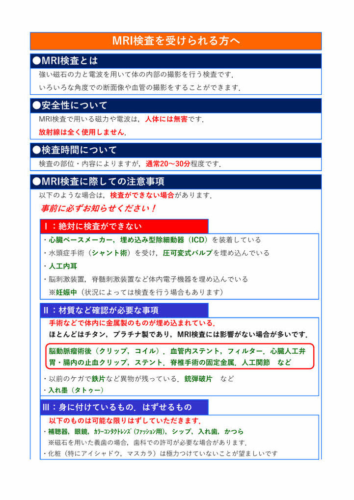 MRI検査留意事項 - さくだ脳神経外科クリニック