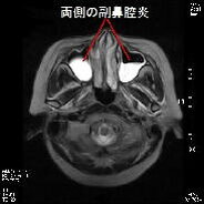 また緑内障など眼科的な問題で慢性的な頭痛を引き起こしている場合もありますし,耳鼻科的疾患である副鼻腔炎(蓄膿症)が原因となっている場合も結構見られます.最近はアレルギー性鼻炎の方が多く2次的に急性副鼻腔炎を引き起こしている方も多く見られます.左の写真は副鼻腔炎の症例ですが,正常例と比較すると膿の貯留により副鼻腔が白くなっています.これらの頭痛も検査をすればすぐに原因が判明します.このように頭痛の原因は思いもよらないところにある場合があり,慢性的な頭痛にお悩みの方は一度検査をお勧めします.